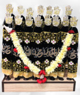 Introducing the Azakhana Treasure Alam Set with Black Velvet Patkas Panja. This magnificent set pays homage to the 14 Masoomeen (AS) and Hazrat Abbas (AS). The striking Black Velvet Patkas Panja and intricately crafted alams embody devotion and reverence. Display this set in your sacred space, inviting contemplation and spiritual growth. A cherished heirloom that carries the legacy of faith and love for Ahlul Bayt.