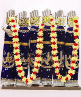Details: Azakhana Treasure 14 Masoomeen (as) and Hazrat Abbas (as) Alam Set with Black Velvet Patkas Panja