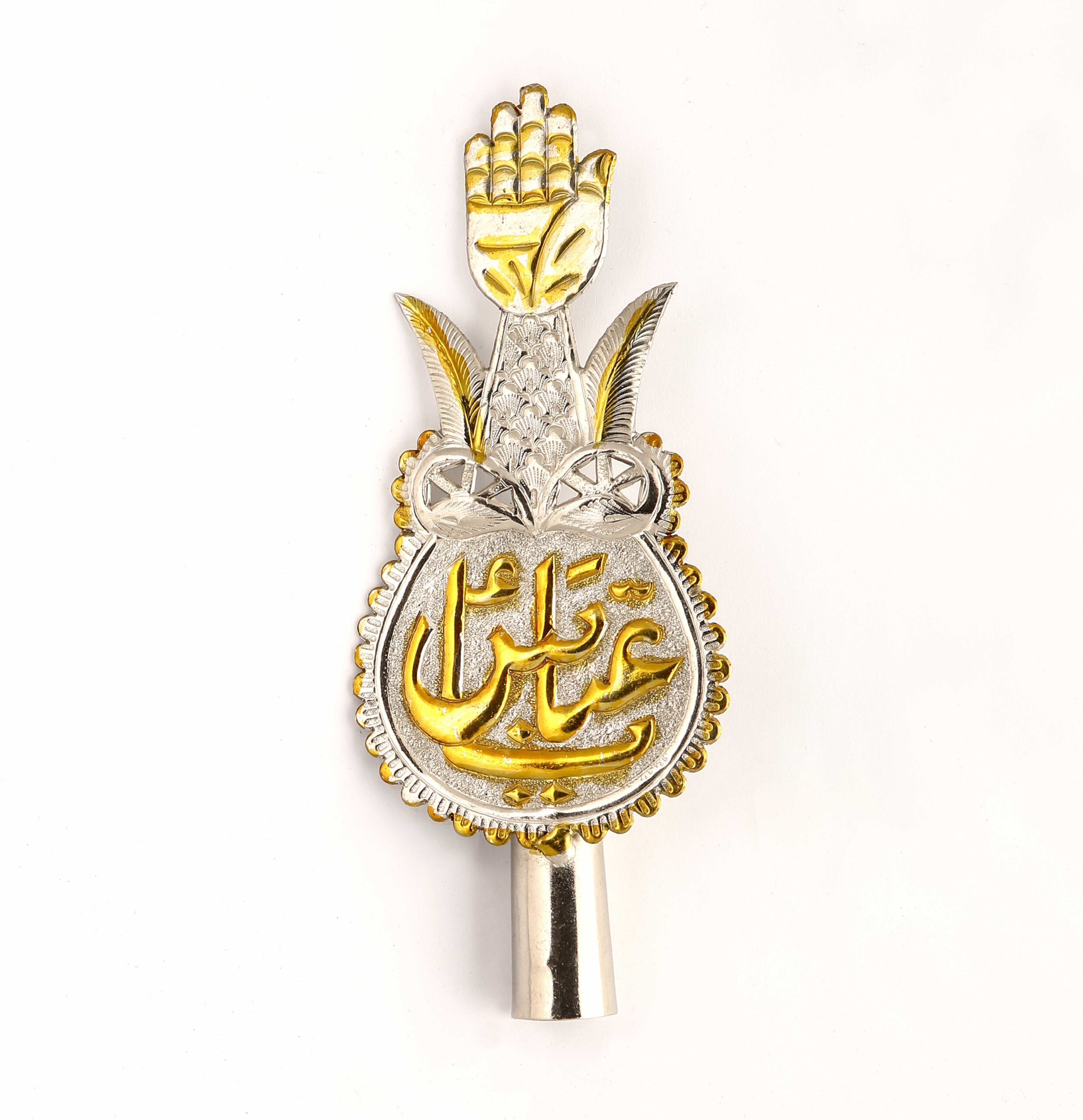 Details: Elegant Panja Ya Abbas (as) German Silver Alam Panja in Golden Polish