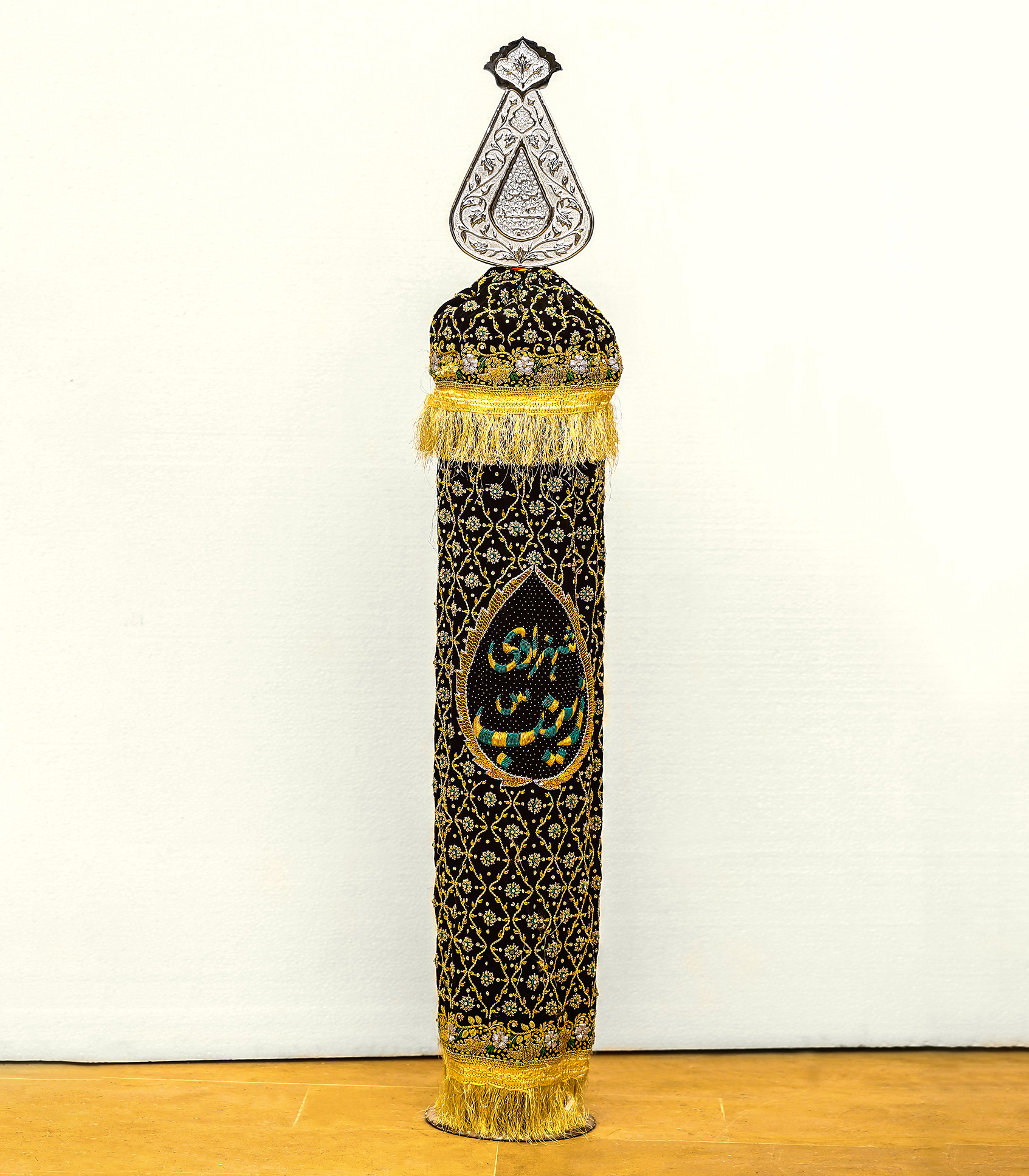 Details: Shahzadi Zainab (sa) Alam & Bibi Sakina (sa) Panja For Home Azakhana in Wood Bark color Velvet (New Arrival)